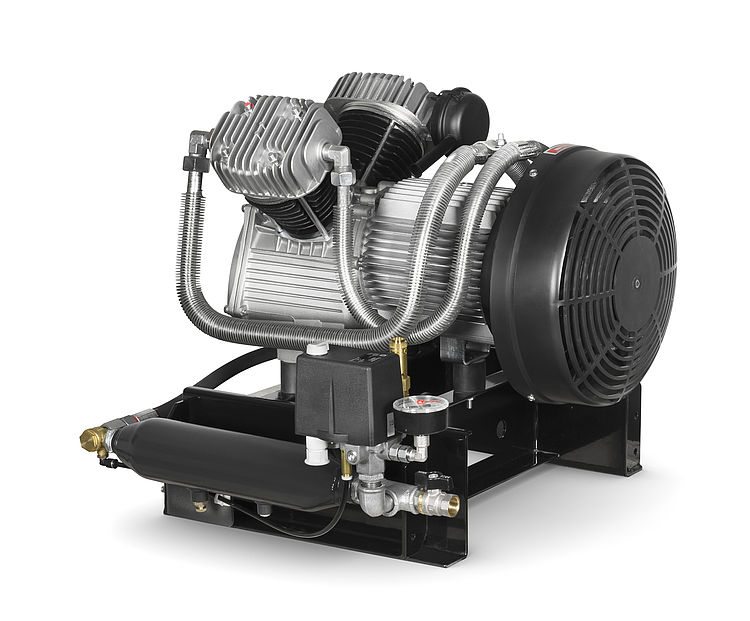 Die Aggregate werden anschlussfertig geliefert mit kleinem Puffertank, Druckschalter und Manometer